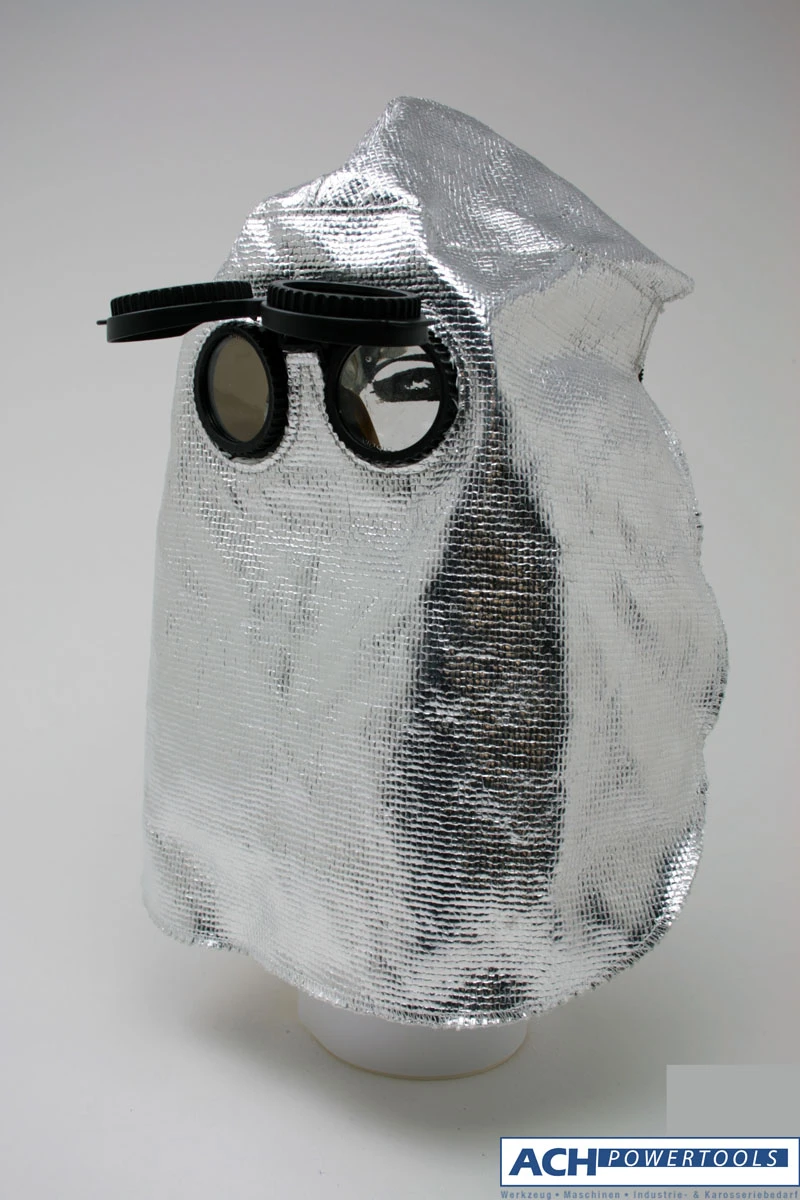 Kopfhaube aus Hitzeschutzgewebe mit Klappbrille, ohne Nase, hinten offen