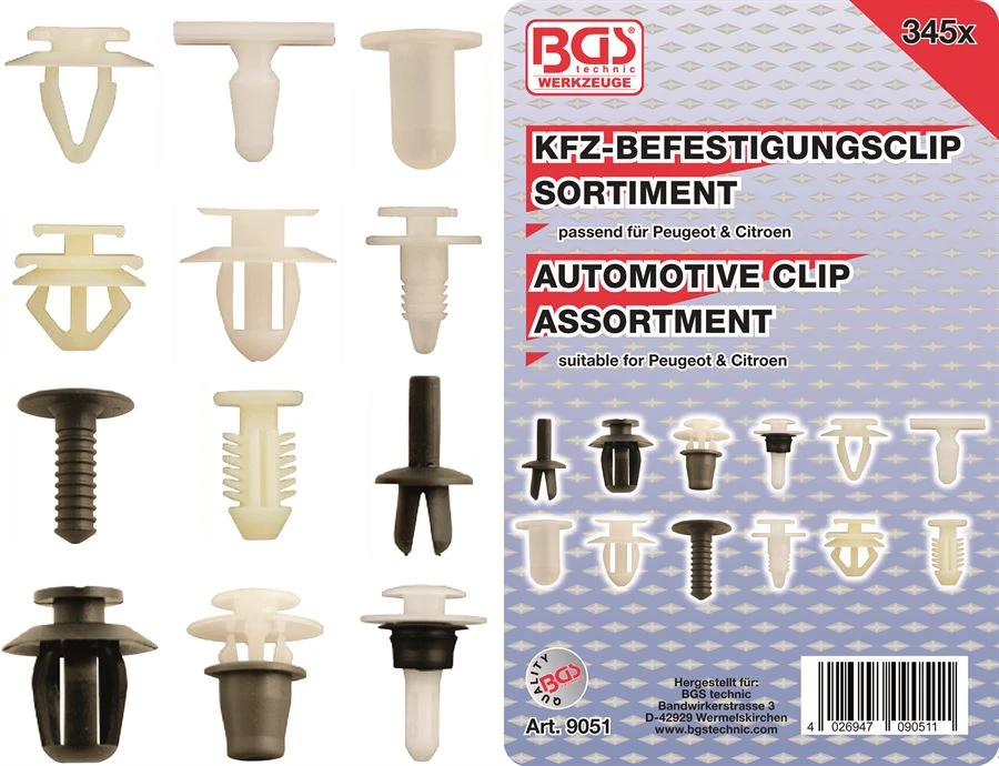 Kfz-Befestigungsclip-Sortiment für Peugeot, Citroen | 345-tlg.