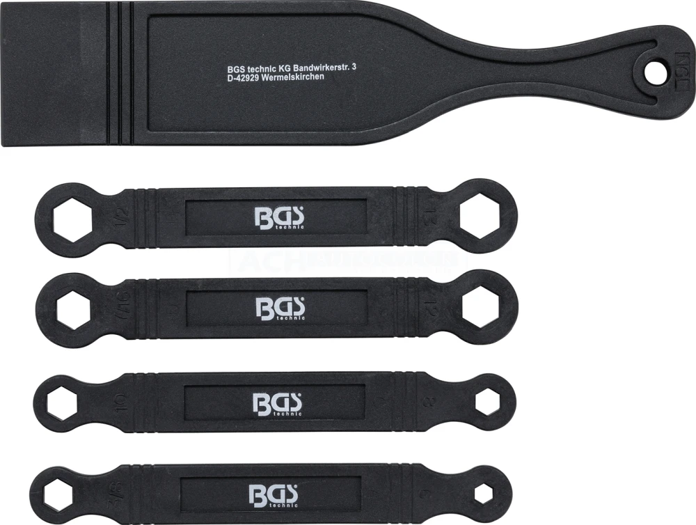 - 4 Doppelringschlüssel, Abtriebsprofil: Sechskant, Größen: 6, 8, 10, 12, 13 mm, 3/8″, 7/16″, 1/2″