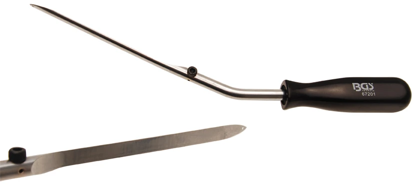 - der lange, abgewinkelte Schaft verringert das Risiko die Verkleidung zu beschädigen