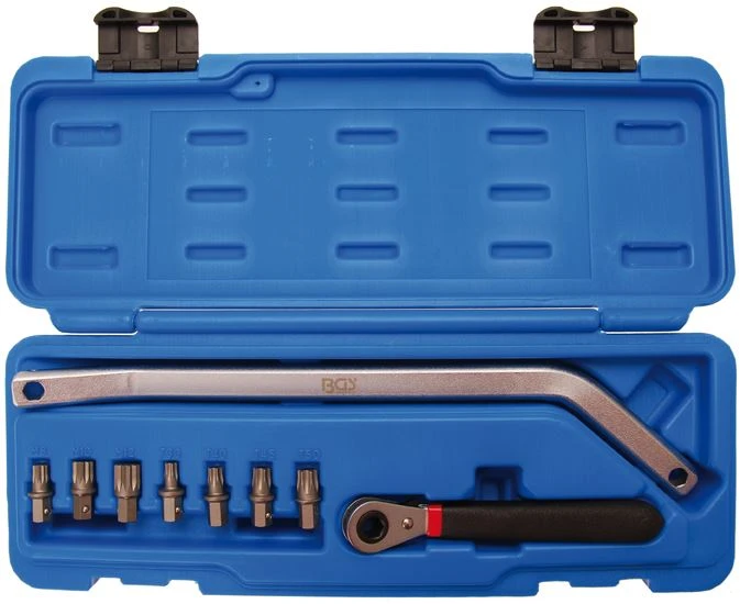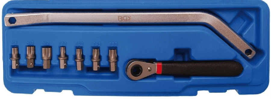 - beinhaltet folgende Bits mit Haltekugel für Innenvielzahn-Schrauben M8, M10 und M12 sowie für T-Profil-Schrauben T30, T40, T45 und T50