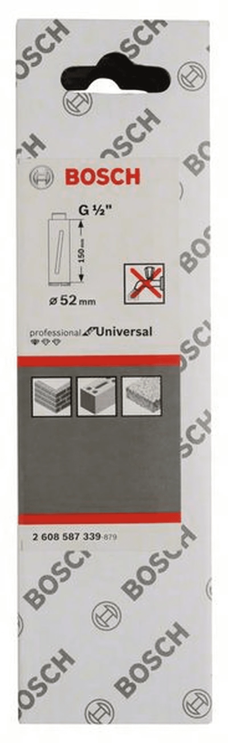 BOSCH Professional Diamanttrockenbohrkrone G 1/2″, Standard for Universal, 52 mm, 150 mm, 4, 7 mm 2608587339