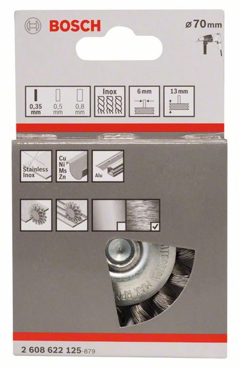 BOSCH Professional Scheibenbürste, Edelstahl, gezopfter Draht, 70 mm, 0,35 mm, 14 mm, 4500 U/ min 2608622125