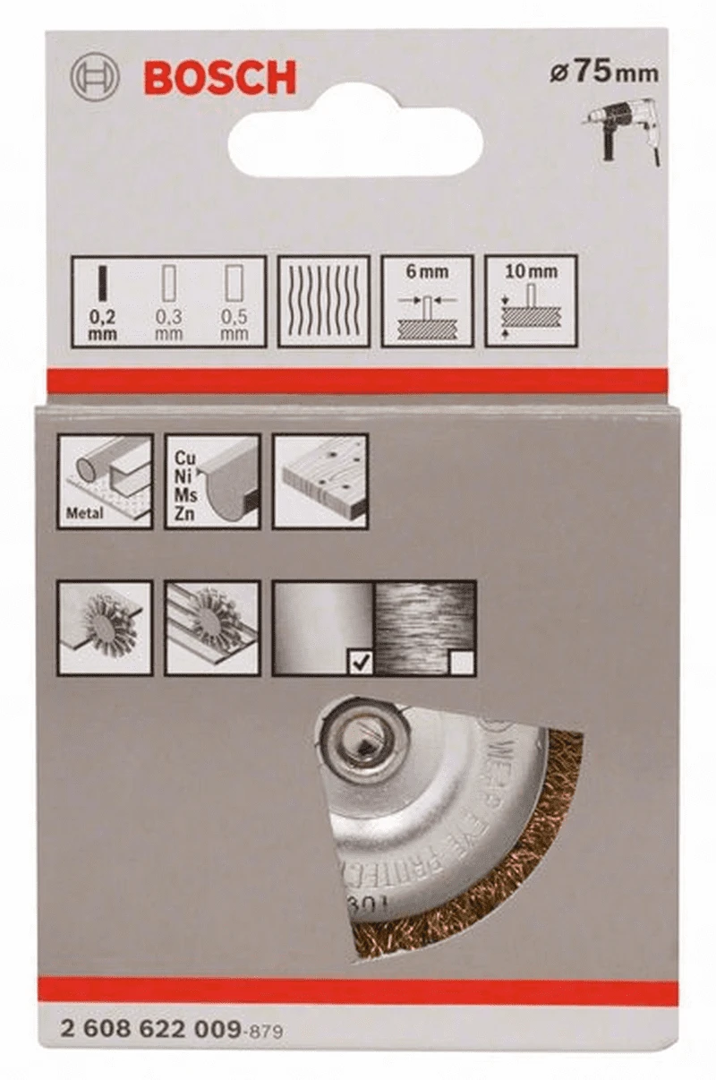 BOSCH Professional Scheibenbürste, Messing, gewellter Draht, 75 mm, 0,2 mm, 10 mm, 4500 U/ min 2608622009