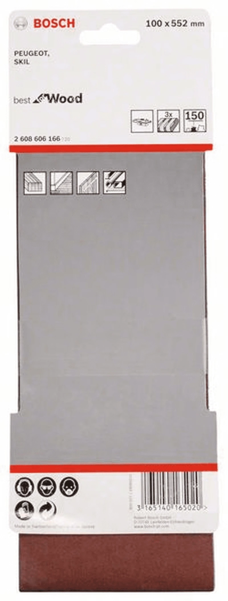 Schleifband-Set X440. Best for Wood and Paint. Schleifband für Bandschleifer. 3-teilig. Bandabmessung Breite: 100 mm, Länge: 552 mm, Körnung 150. Sehr stabiles und langlebiges Schleifband. Spezifische anwendungsorientierte Bandverbindungen in gleichbleibend hoher Qualität für perfekte Oberflächen. Dank antistatischem Aufbau staubfreie Schleifbänder, Werkstücke und Elektrowerkzeuge. Hohe Abtragsleistung und feine Oberflächen. Schleifband mit höchst präzisem, sauberem Bandverlauf ohne Leimrückstände für beste Oberflächenqualität. Geeignet für das Schleifen von allen Holzarten, Hartholz, Span-, Bauplatten und Farbe. Passend zu Bandschleifern von Peugeot und Skil.