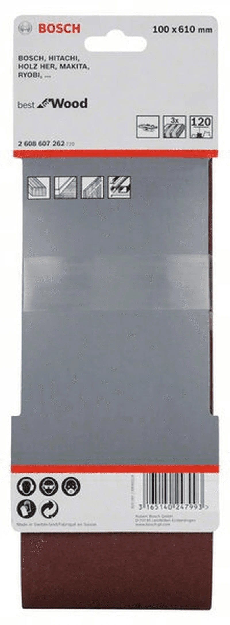 BOSCH Professional Schleifband-Set X440, Best for Wood and Paint, 3-teilig, 100 x 610 mm, 120 2608607262