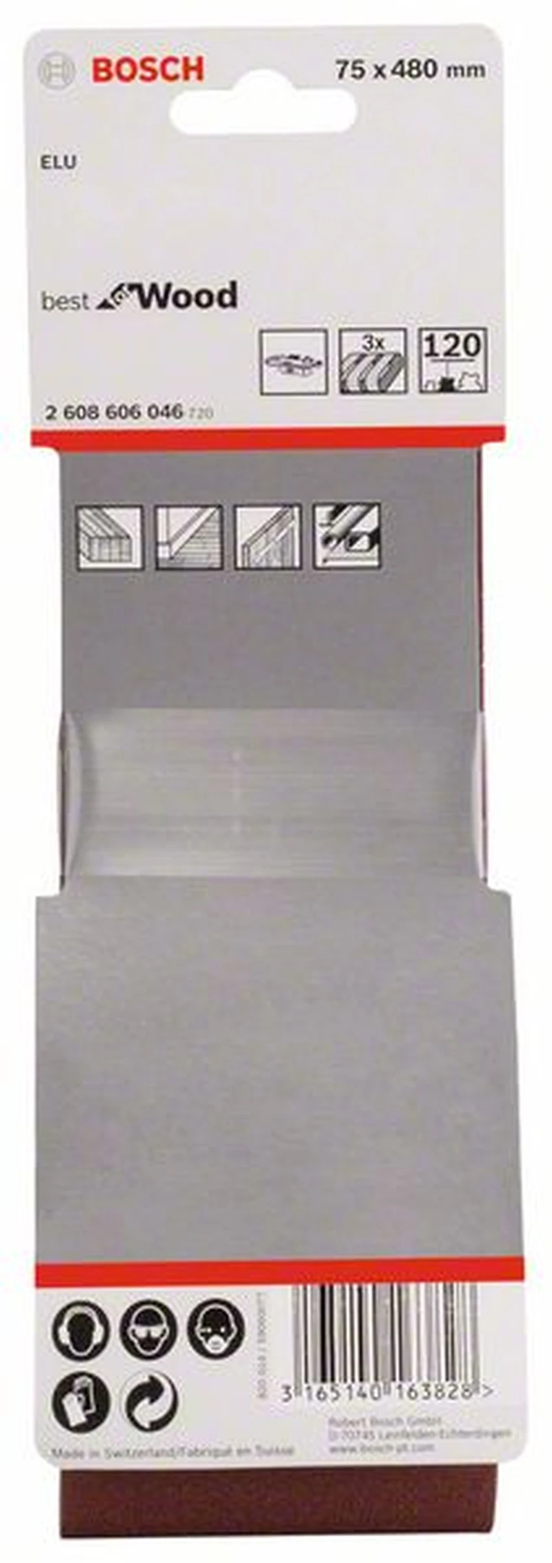 BOSCH Professional Schleifband-Set X440, Best for Wood and Paint, 3-teilig, 75 x 480 mm, 120 2608606046