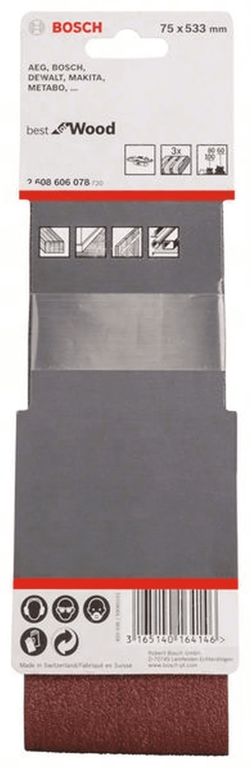 BOSCH Professional Schleifband-Set X440, Best for Wood and Paint, 3-teilig, 75 x 533 mm, 60, 80,100 2608606078