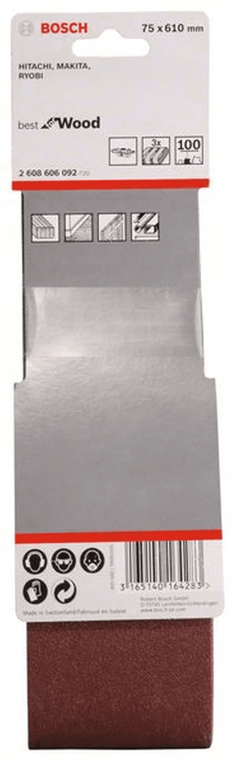 BOSCH Professional Schleifband-Set X440, Best for Wood and Paint, 3-teilig, 75 x 610 mm, 100 2608606092