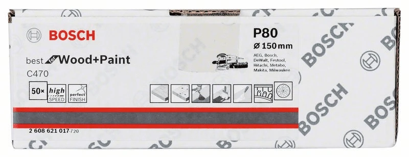 BOSCH Professional Schleifblatt C470, 150 mm, 80, Multilochung, Klett, 50er-Pack 2608621017