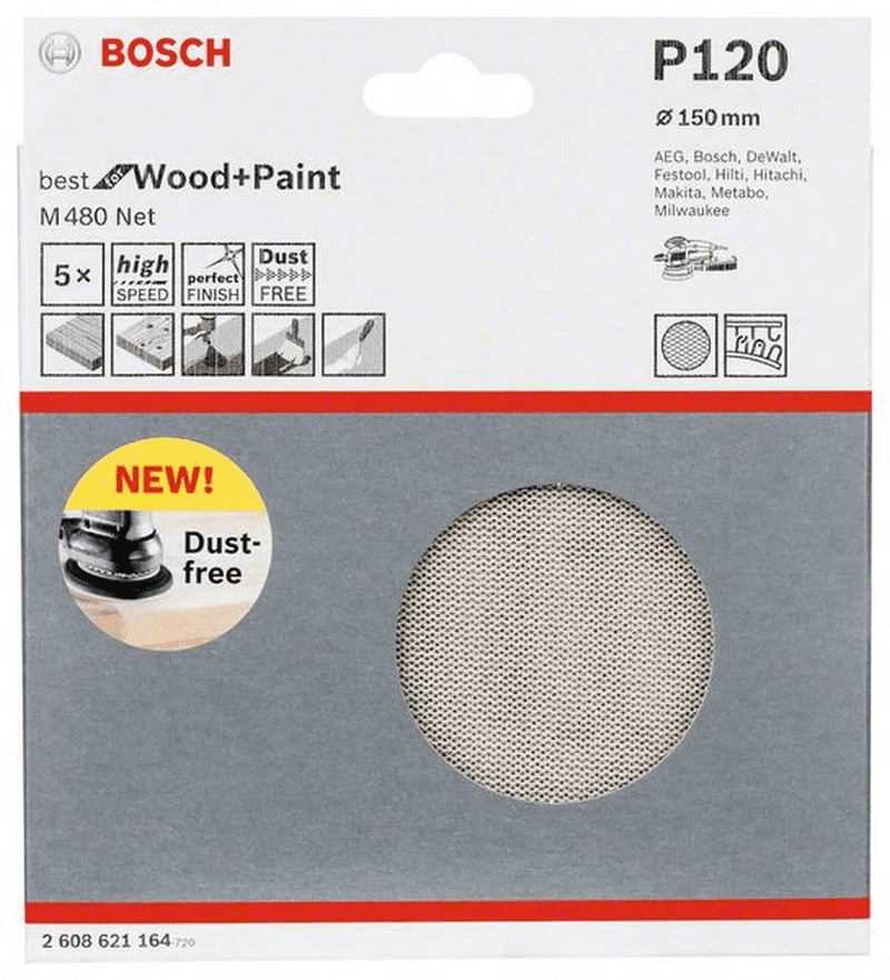 BOSCH Professional Schleifblatt M480 Net, Best for Wood and Paint, 150 mm, 120, 5er-Pack 2608621164 – JETZT 2608900691