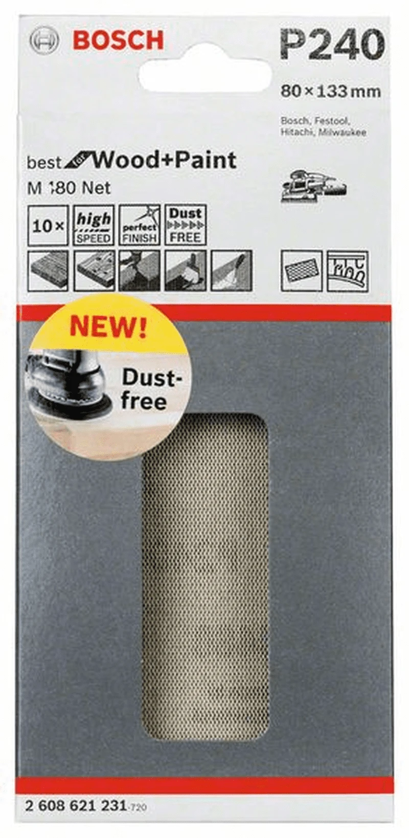 BOSCH Professional Schleifblatt M480 Net, Best for Wood and Paint, 80 x 133 mm, 240, 10er-Pack 2608621231