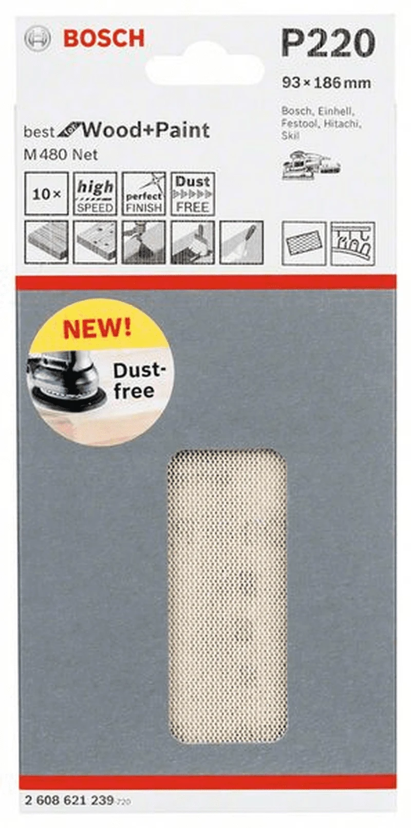 BOSCH Professional Schleifblatt M480 Net, Best for Wood and Paint, 93 x 186 mm, 220, 10er-Pack 2608621239