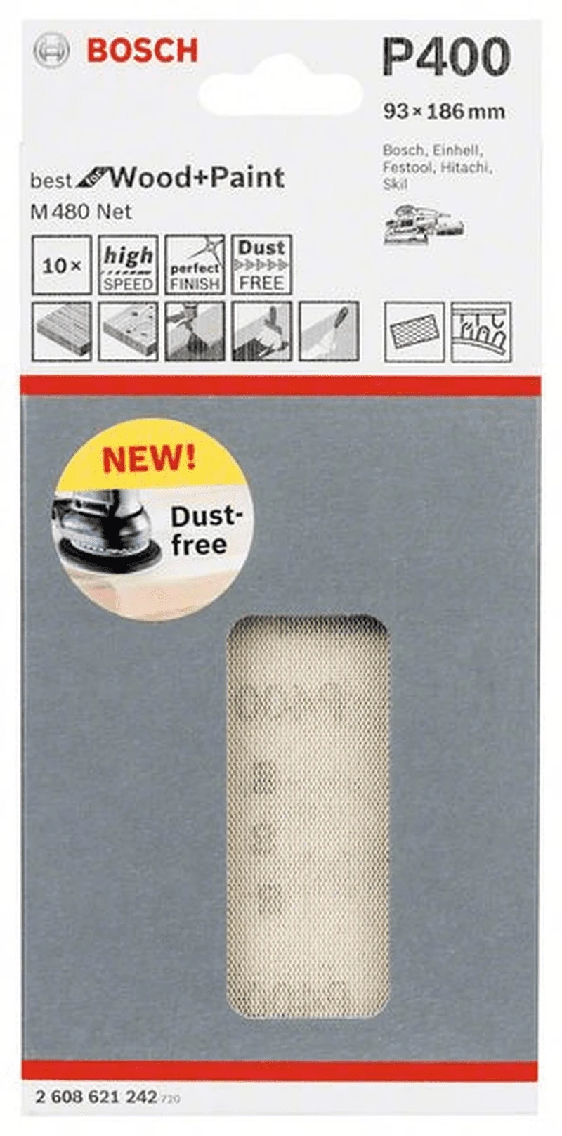 BOSCH Professional Schleifblatt M480 Net, Best for Wood and Paint, 93 x 186 mm, 400, 10er-Pack 2608621242