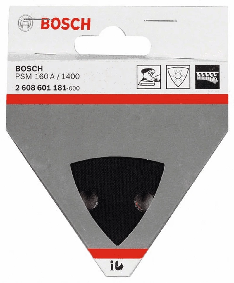 Schleifplatte für Bosch-Dreieckschleifer mit Klettsystem. Passend zu Dreieckschleifer PSM 160 A, PSM 160 AE, PSM Ventaro 1400.