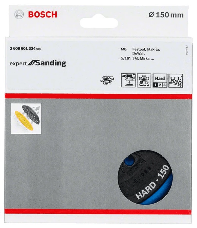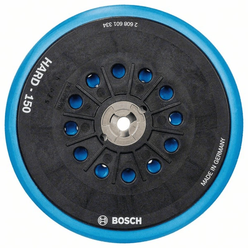 Schleifteller Multiloch hart. Durchmesser: 150 mm, Farbe blau. Staubfreies Schleifen mit dem Bosch Multi-Loch-Teller. Scheifteller mit Mehrfachlochung. Alle für einen: Vielseitiges Lochmuster. Geeignet für alle Lochmusterscheiben und Klettbandtypen. Staubabsaugung: Wesentlich bessere Staubabsaugung als derzeitige 6-/8-Loch-Standardteller von Bosch. Zum Grobschleifen, wie beispielsweise Abschleifen von Farbe, Füller, Gips und unbehandeltem Naturholz. Für flache Oberflächen und schmale Kanten. Hohe Kantenfestigkeit. Passend zu 3M, DeWalt, Dynabrade, Festool, Makita, Mirka und Rupes.
