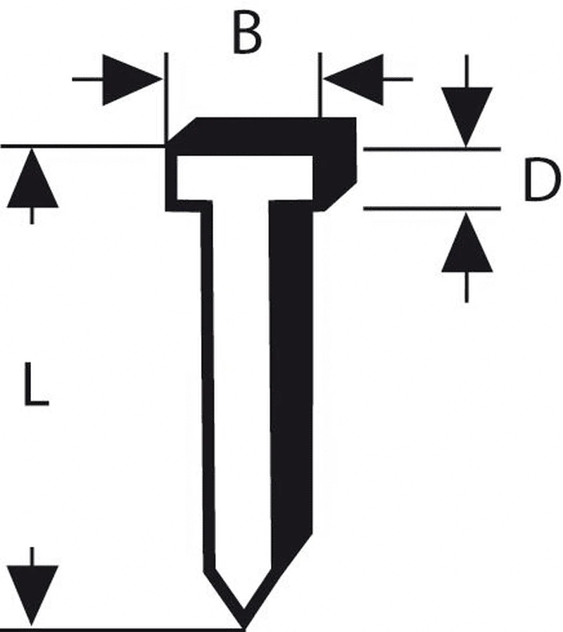 Nagel Typ 47. Nagel für Tacker. Kopfbreite: 1,8 mm, Dicke: 1,27 mm, Stiftlänge: 23 mm. Bosch-Tackernägel aus Hartstahldraht. Passend zu Tackern von AEG, Bosch, Esco, Kwb, Lux, Mekano, Metabo, Novus, Peugeot, Rocafix, Rocagraf, Stanley, Swingline, Wolfcraft.