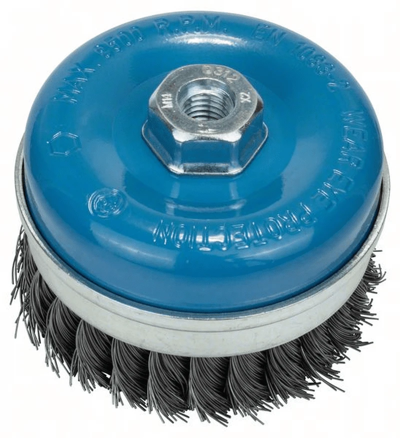 BOSCH Professional Topfbürste, Stahl, gezopfter Draht, 100 mm, 0,5 mm, 8500 U/ min, M 14 2608622010