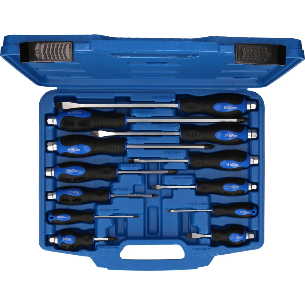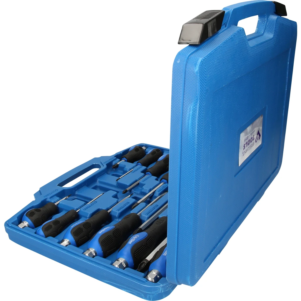 Ob Werkstatt, Handwerker oder sogar im Haushalt, dieser Premium Schraubendrehersatz von BRILLIANT TOOLS BT034012 sollte in keiner Grundausstattung fehlen. Im stabilen Kunststoffkoffer sind alle Schraubendreher, nach Größe und Profil sortiert und platzsparend verstaut. Die jeweils 6 Kreuz-Schlitz und Schlitzschraubendreher sind mit durchgehender Klinge und einem Außensechskant ausgestattet der auch als Schlagkappe jedem Hammerschlag trotzt. Durch den Außensechskant kann ebenfalls ein Gabel-Ringschlüssel zur Unterstützung aufgesetzt werden, womit die Drehbewegung beim Öffnen der Schraube verstärkt wird. Auch wirklich festsitzende Schrauben sind dann kein Problem mehr.