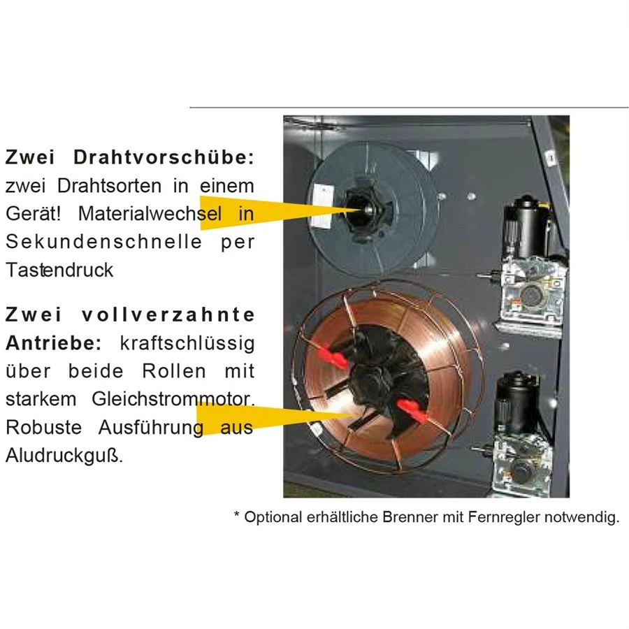 ! Fernregler: am Brenner einstellbar, zum Wechseln der Schweißstärke ist kein Gang zur Maschine erforderlich.