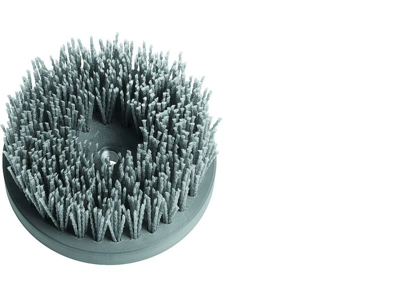 •Topf-Nylonbürste Ø 125 mm, Korn 46, M 14, zum Bürsten nach dem Ablaugen, Reinigen von Dachbalken, Restaurieren antiker Möbel, Anrauen von Farbe vor dem Neuanstrich, Entgraten und leichtem Entrosten von Metallteilen