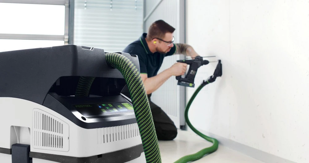 - Staubfreie Akku-Anwendungen: Perfektes Zusammenspiel mit den Festool Akku-Werkzeugen für mobiles Sägen, Schleifen oder Bohren