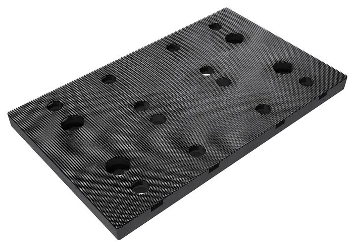 Schleifplatte mit Kantenschutz aus hoch strapazierfähigem Spezialmaterial mit Absauglochung