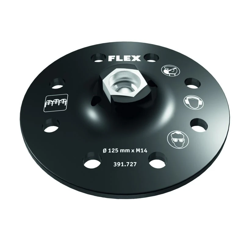Mit 8-Loch System zur optimalen Staubabsaugung für alle FLEX Klett-Schleifmittel Ø 125mm sowie anderer Hersteller. Die 3 mm Zellkautschuk-Dämpfung reduziert die Abscherkräfte zwischen Trägerteller und Schleifmittel. Durch hohe Kletthaken wird mehr Temperaturbeständigkeit bei starker Beanspruchung erreicht.