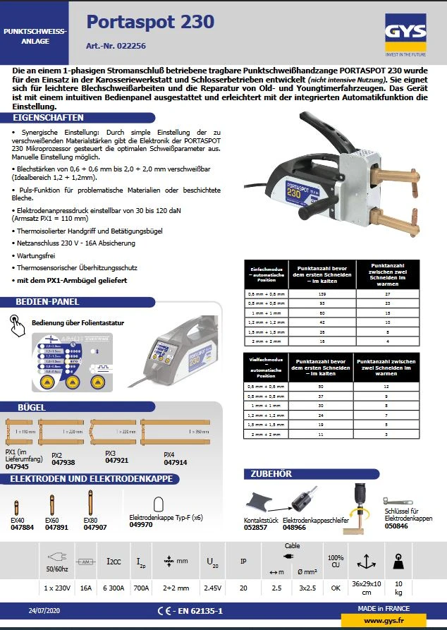 GYS 022256 tragbare Punktschweißhandzange PORTASPOT 230 230V mit PX1 Arm