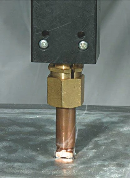 Der Schweißvorgang wird durch einfachen Kontakt des Werkzeuges mit dem zu bearbeitenden Karosserieteil automatisch ausgelöst