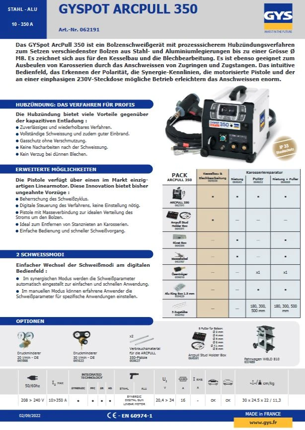 GYS GYSPOT ARCPULL 350 Alu Spotter Grundgerät – 062191