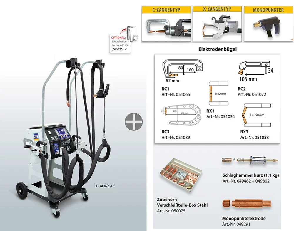 hochfesten Stählen geeignet ist. Der Elektrodenanpressdruck kann maximal 550 daN mit 120 mm Armtype und