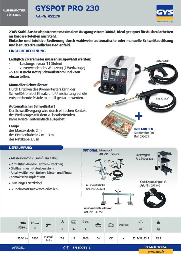 GYS GYSPOT PRO 230 Ausbeulspotter Spotter für Stahl 230V 1ph 052178 2x Pistole