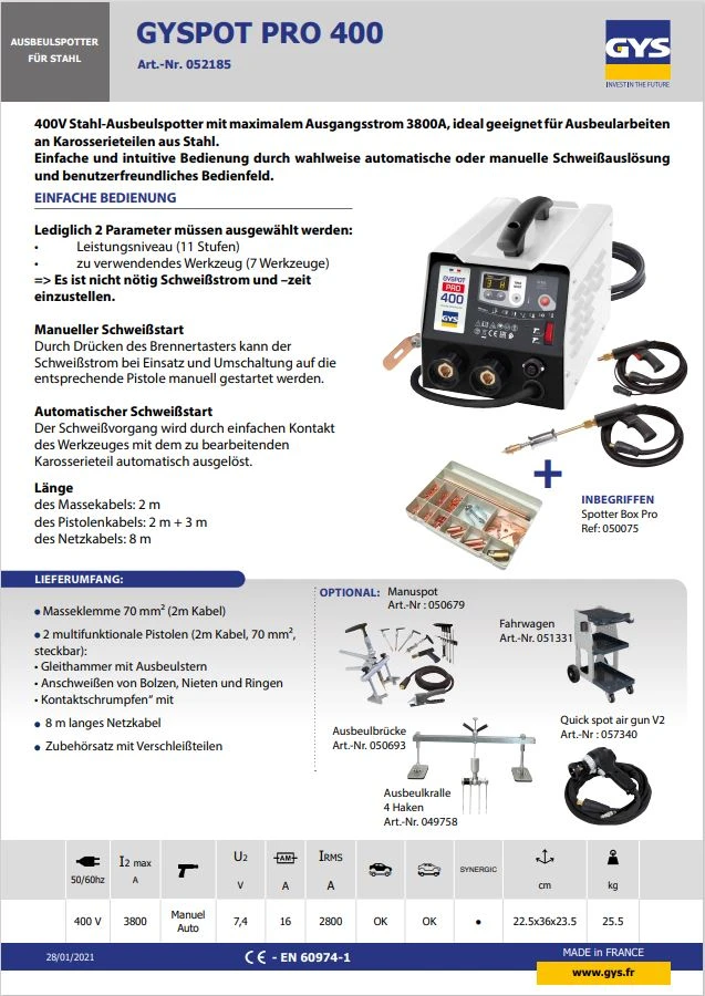 GYS GYSPOT PRO 400 052185 Ausbeulspotter Spotter für Stahl 400V 3ph 2x Pistole