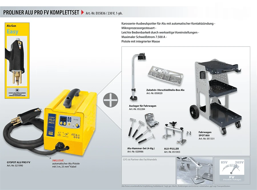 GYS Proliner Alu FV Komplettset Alu Ausbeulspotter + Fahrwagen + Zubehör D35836
