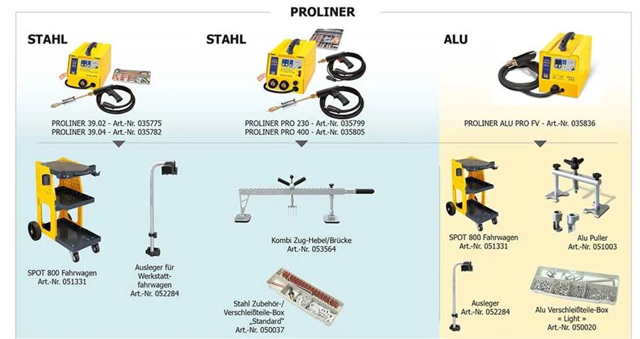 GYS PROLINER PRO 400 GYSPOT PRO 400 Ausbeulspotter + Fahrwagen uvm 035805