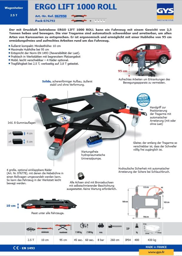 GYS Roll-Hebebühne ERGO LIFT 1000 ROLL – 076792