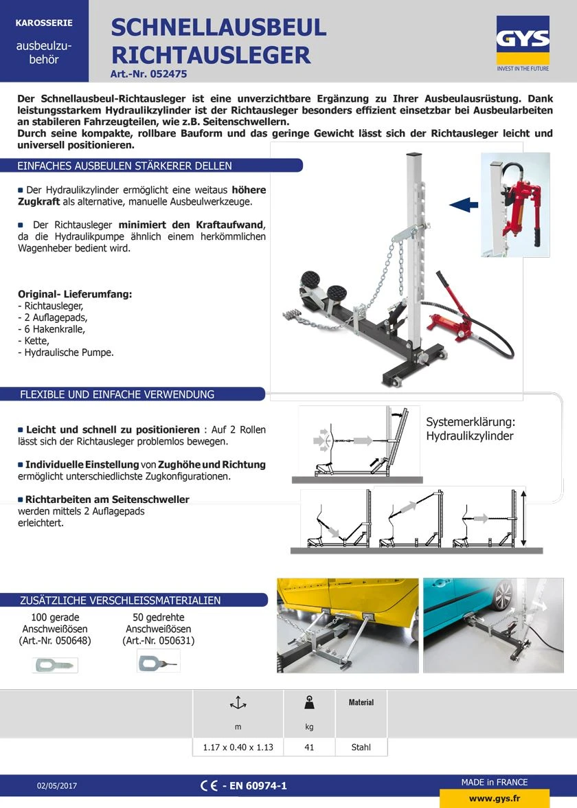 GYS SCHNELLAUSBEULRICHTAUSLEGER D20016 Schnell Ausbeul Richtausleger