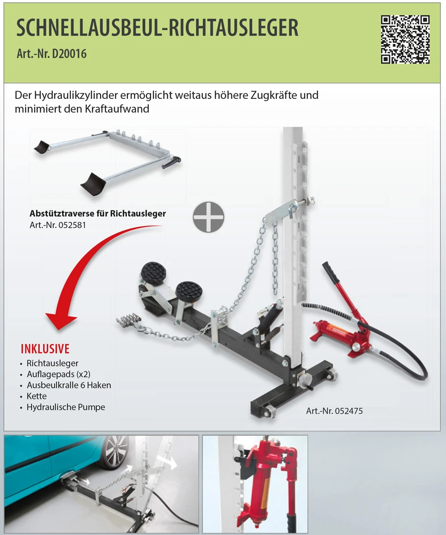 Der Schnellausbeul-Richtausleger ist eine unverzichtbare Ergänzung zu Ihrer Ausbeulausrüstung.