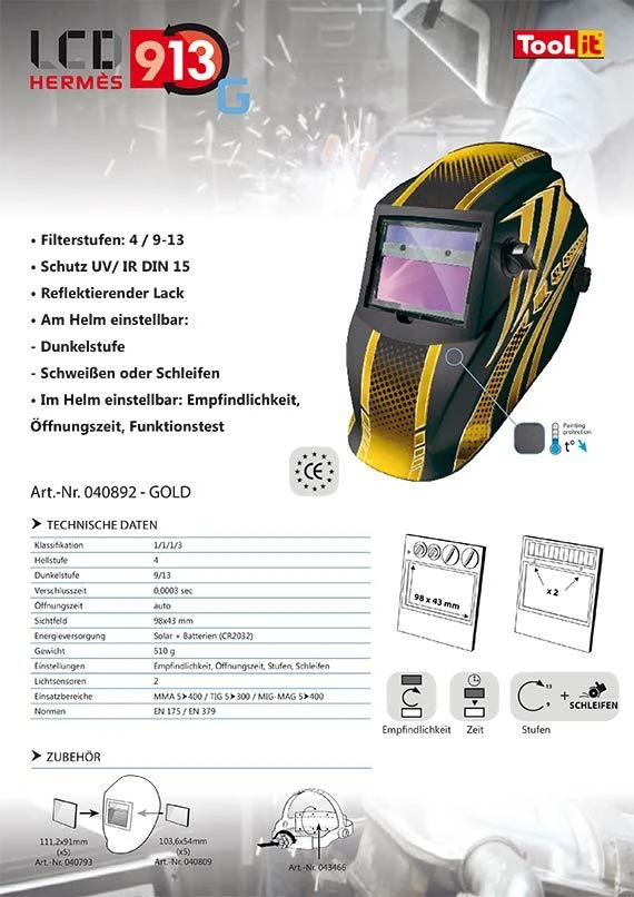 GYS Schweißhelm LCD HERMES 9-13 G gold für MMA MIG WIG silber 040892