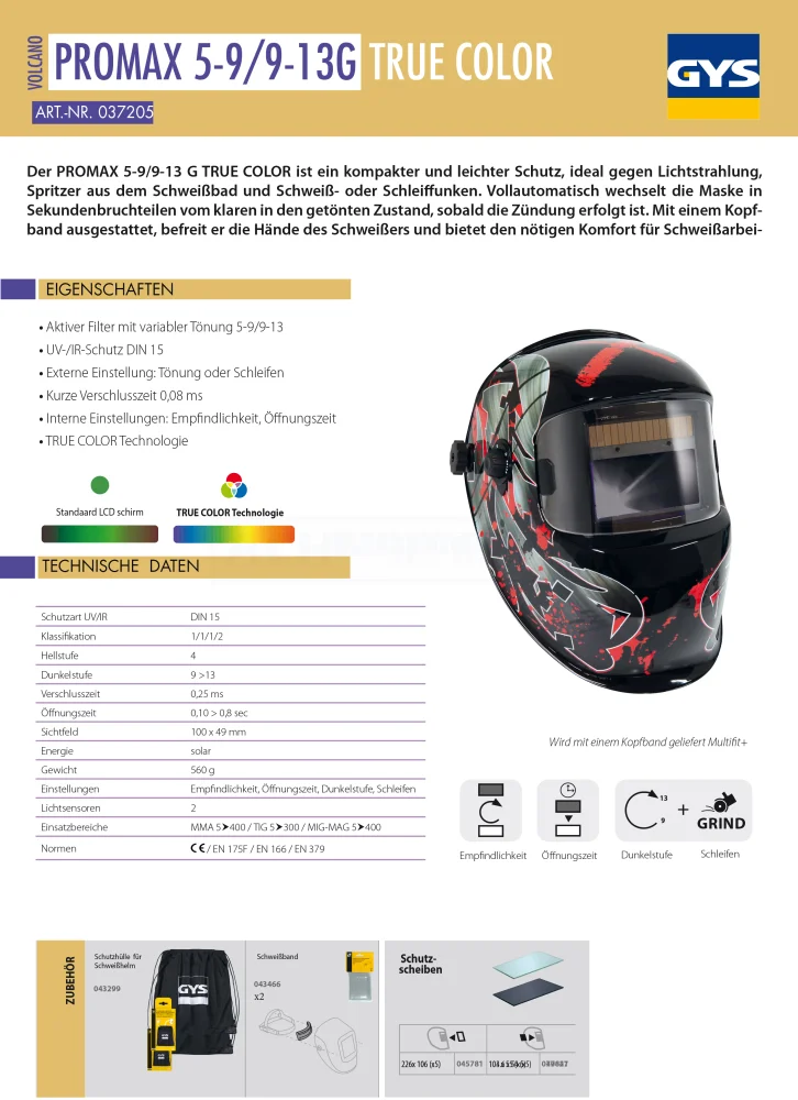 GYS Schweißhelm LCD PROMAX 5-9/9-13 G Volcano