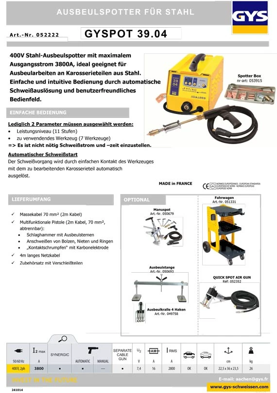 GYS GYSPOT 39.04 3904 Ausbeulspotter Spotter für Stahl 400V 3ph 052222