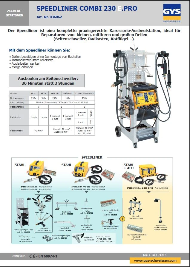 Nachfolgeartikel: GYS SPEEDLINER COMBI 230 E PRO – 036062
