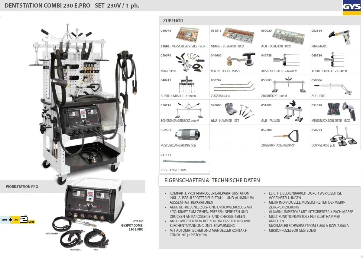 GYS Spotter Ausbeulspotter COMBI 230 E PRO Set D21276 Profi Reparaturstation Set