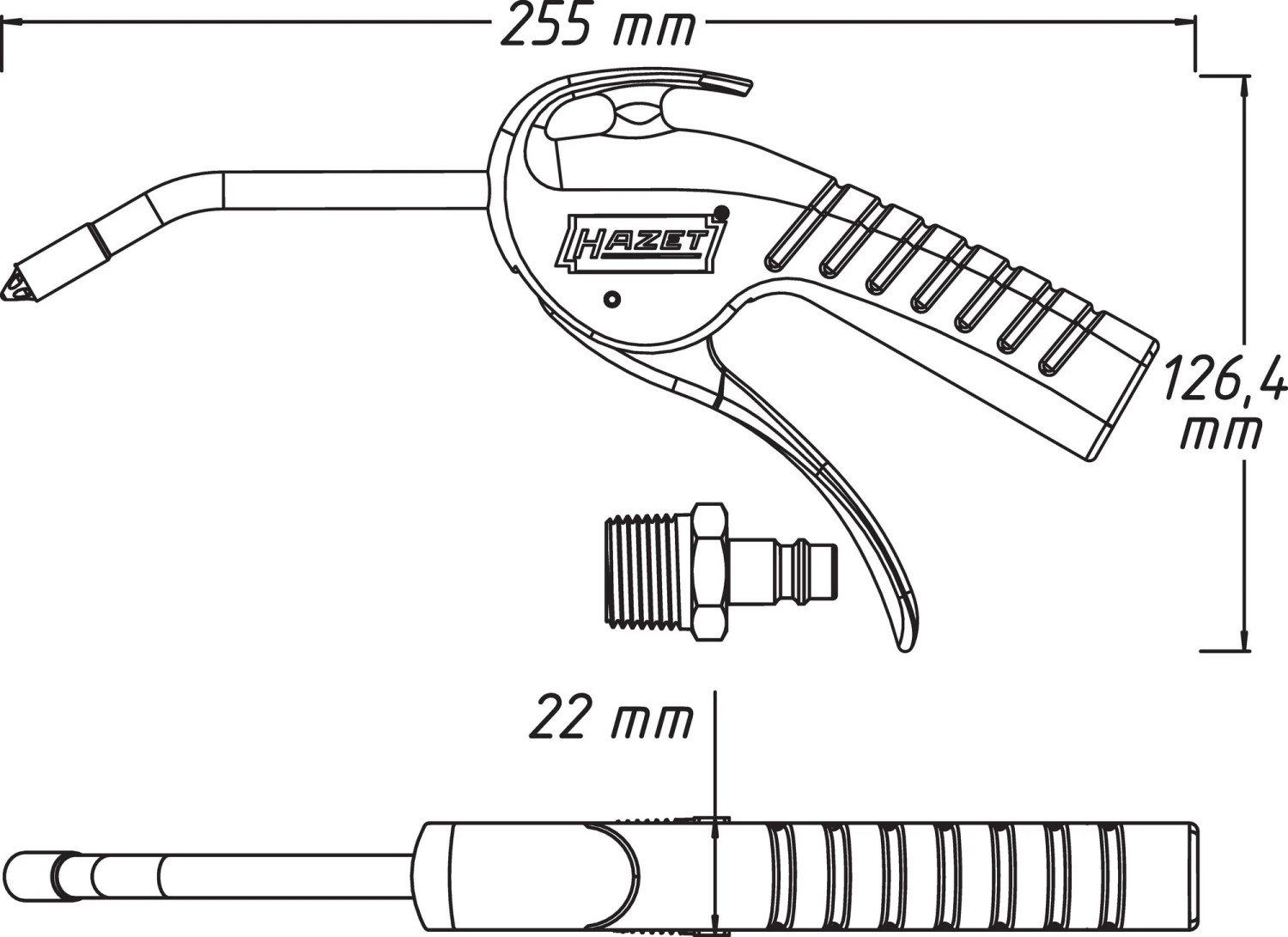 HAZET Ausblaspistole 100 mm geräuscharm mit gebogenem Rohr 9040P-3h