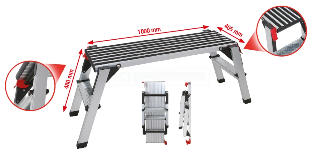 - Kunststoffkanten an Füßen schützen Laufbühne und den Boden