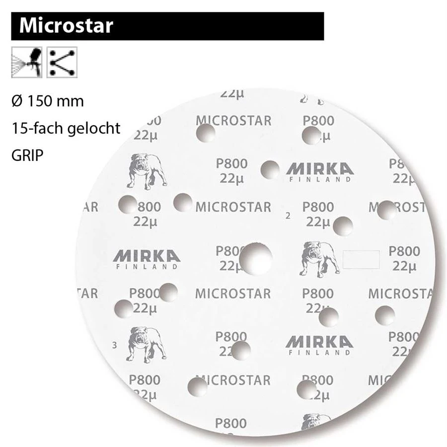 MIRKA MICROSTAR Scheiben 150 150mm Schleifscheiben Foliencheiben 15-Loch Klett P800 bis P2500