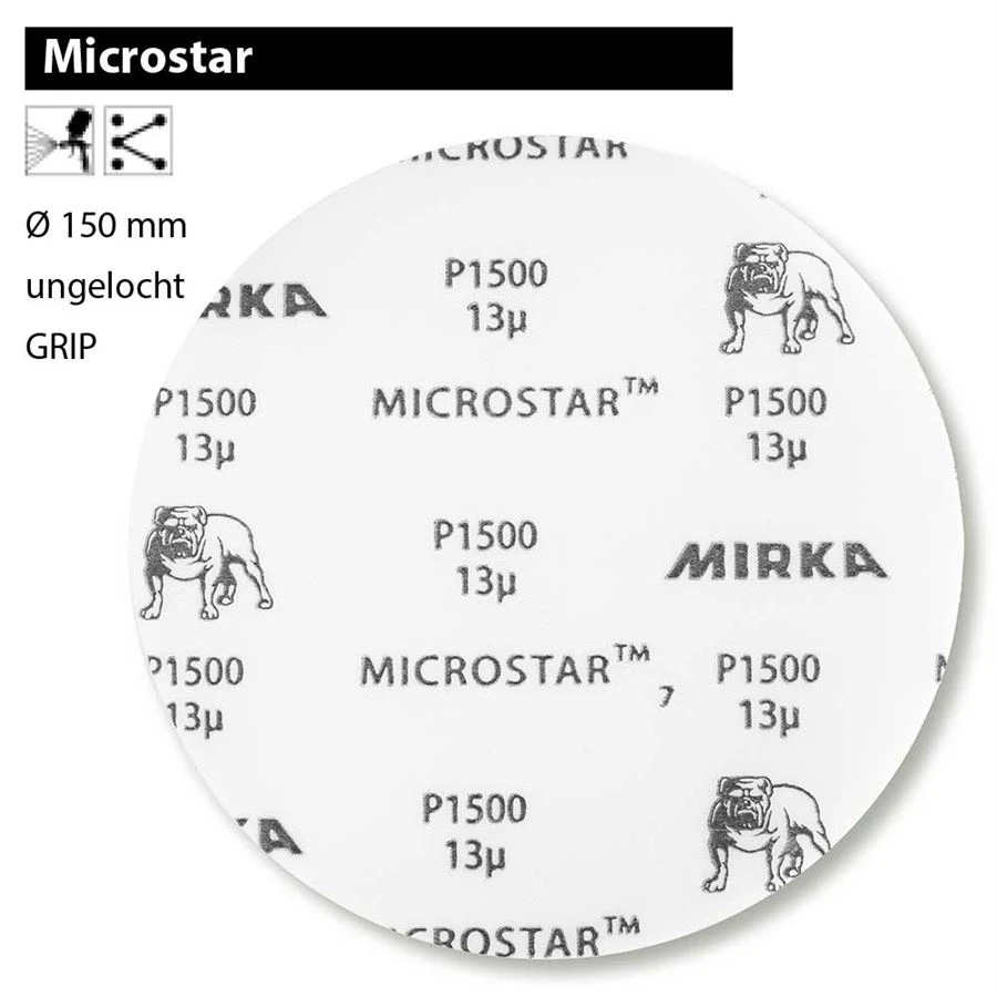 MIRKA MICROSTAR Scheiben 150 150mm Schleifscheiben Foliencheiben ungelocht Klett P800 bis P2500