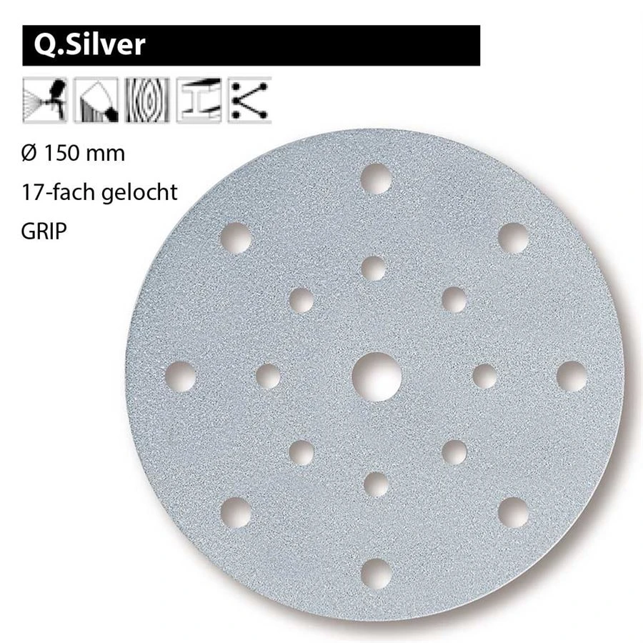 MIRKA Q.SILVER Scheiben 150 150mm Schleifscheiben 17-Loch Klett 3667909980 P80
