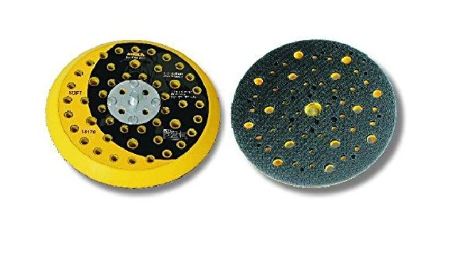 Ø 150 mm Schleifteller mit GRIP-Haftung, 52-Loch, soft, 5/16″. Geeignet für Zweihand-Exzenter und Druckluftexzenter ROS. Lochsysteme: 6-Loch und Abranet.